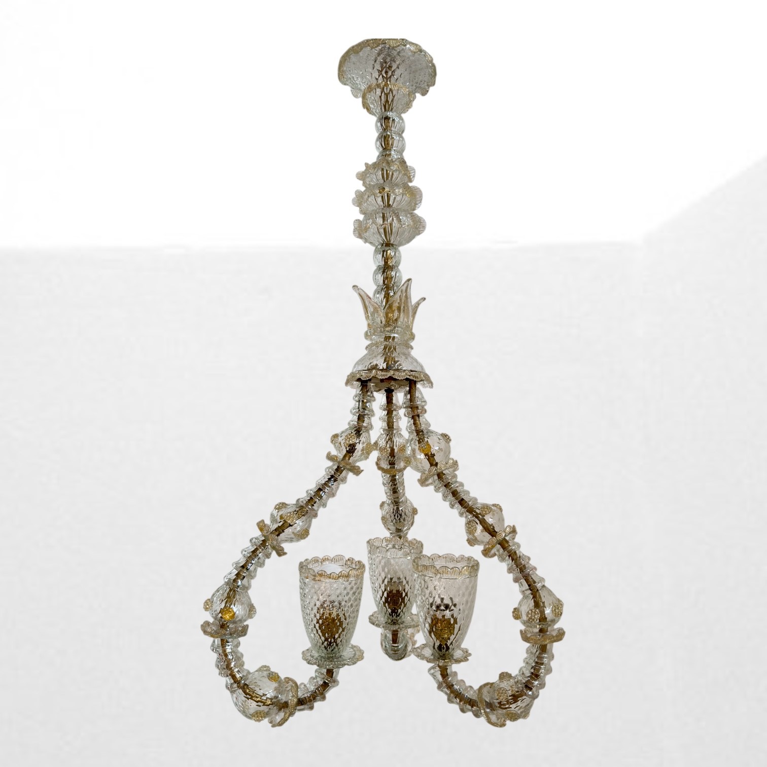 Lampadario  3 luci in Vetro di Murano.. Barovier e Toso, Anni '30.