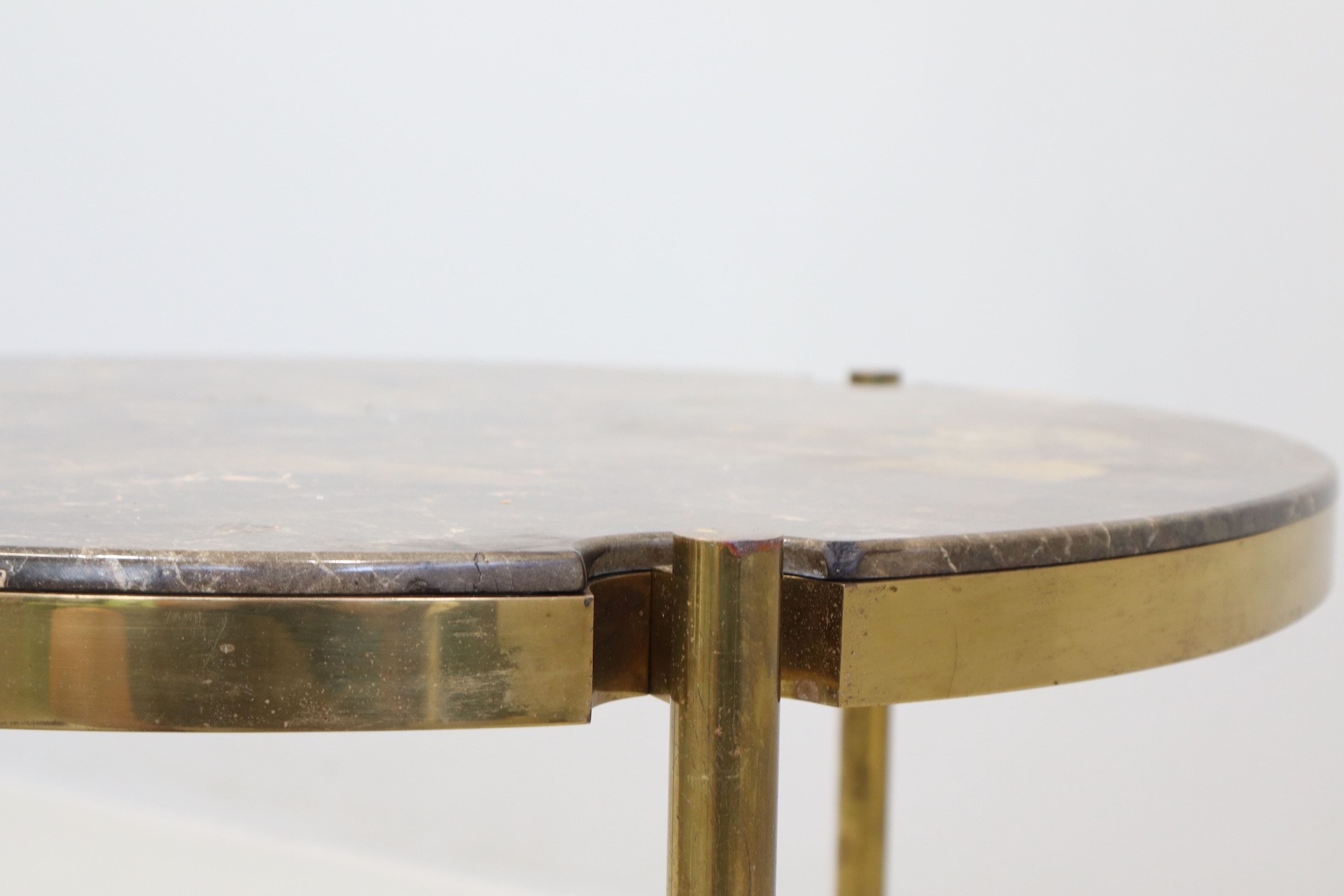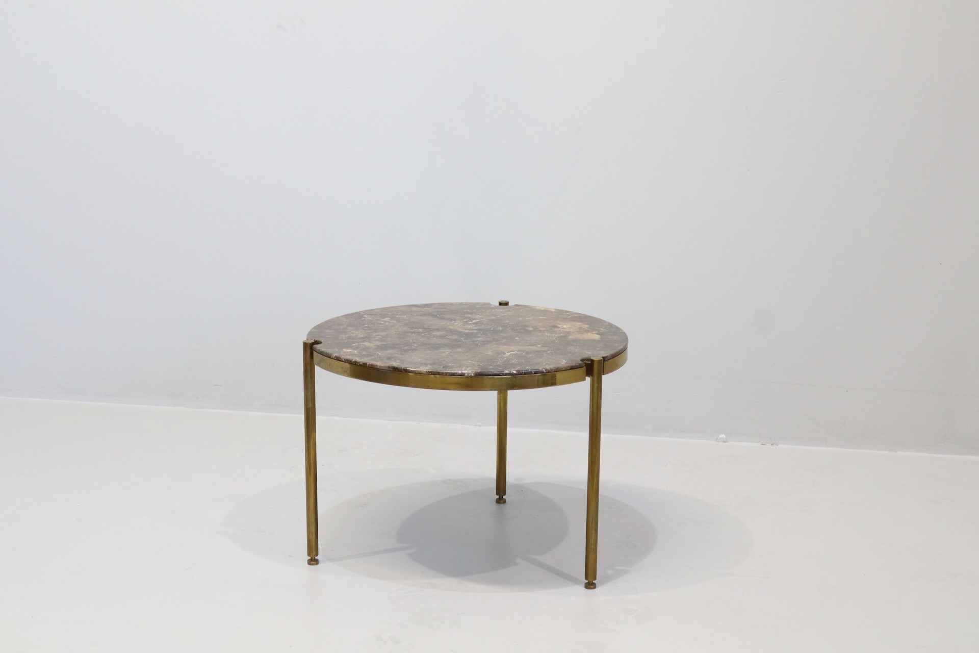 Tavolino da salotto di Osvaldo Borsani per Tecno, struttura in ottone e piano in marmo.