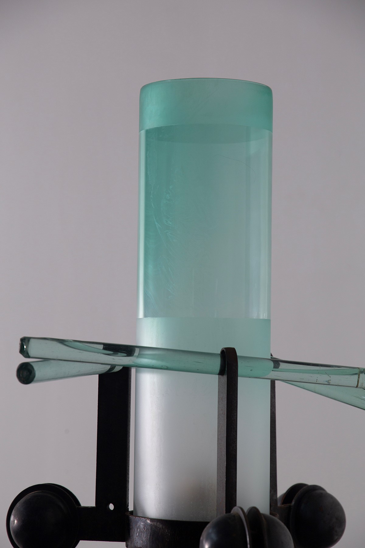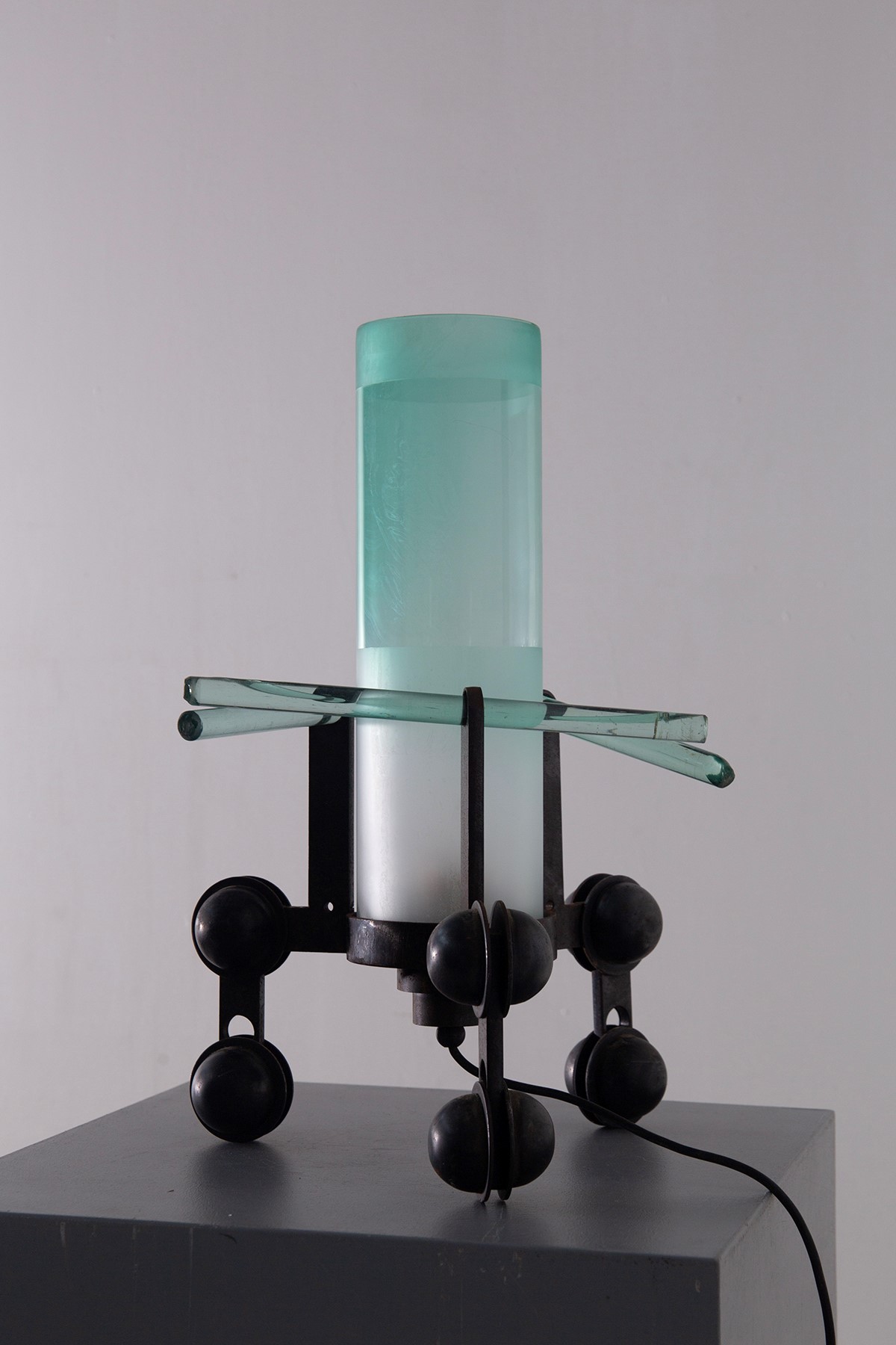 Lampada da tavolo in struttura in ferro con vetro spesso. Fine anni 90