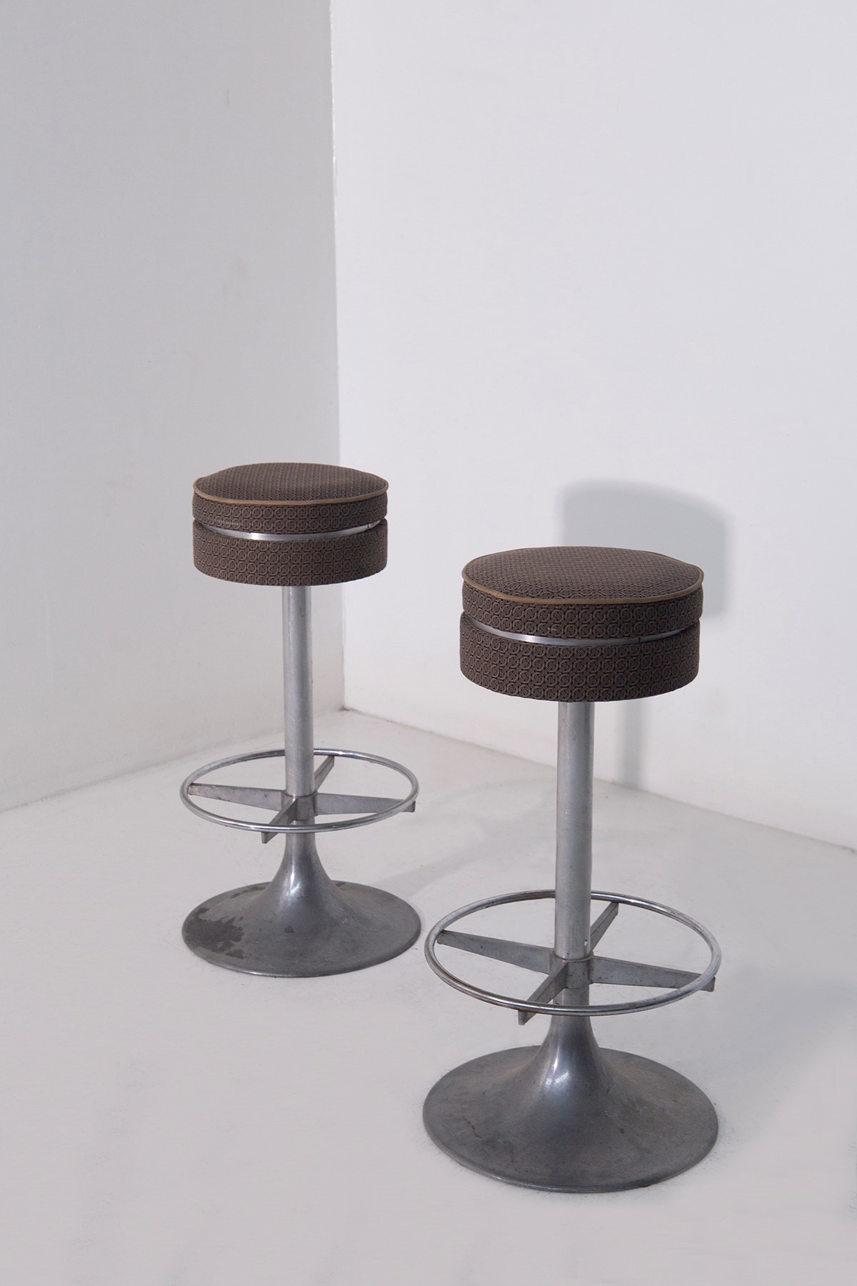 Coppia di sgabelli in metallo anni 60 di manifattura Metal Mobili Arredo con tessuto FENDI.