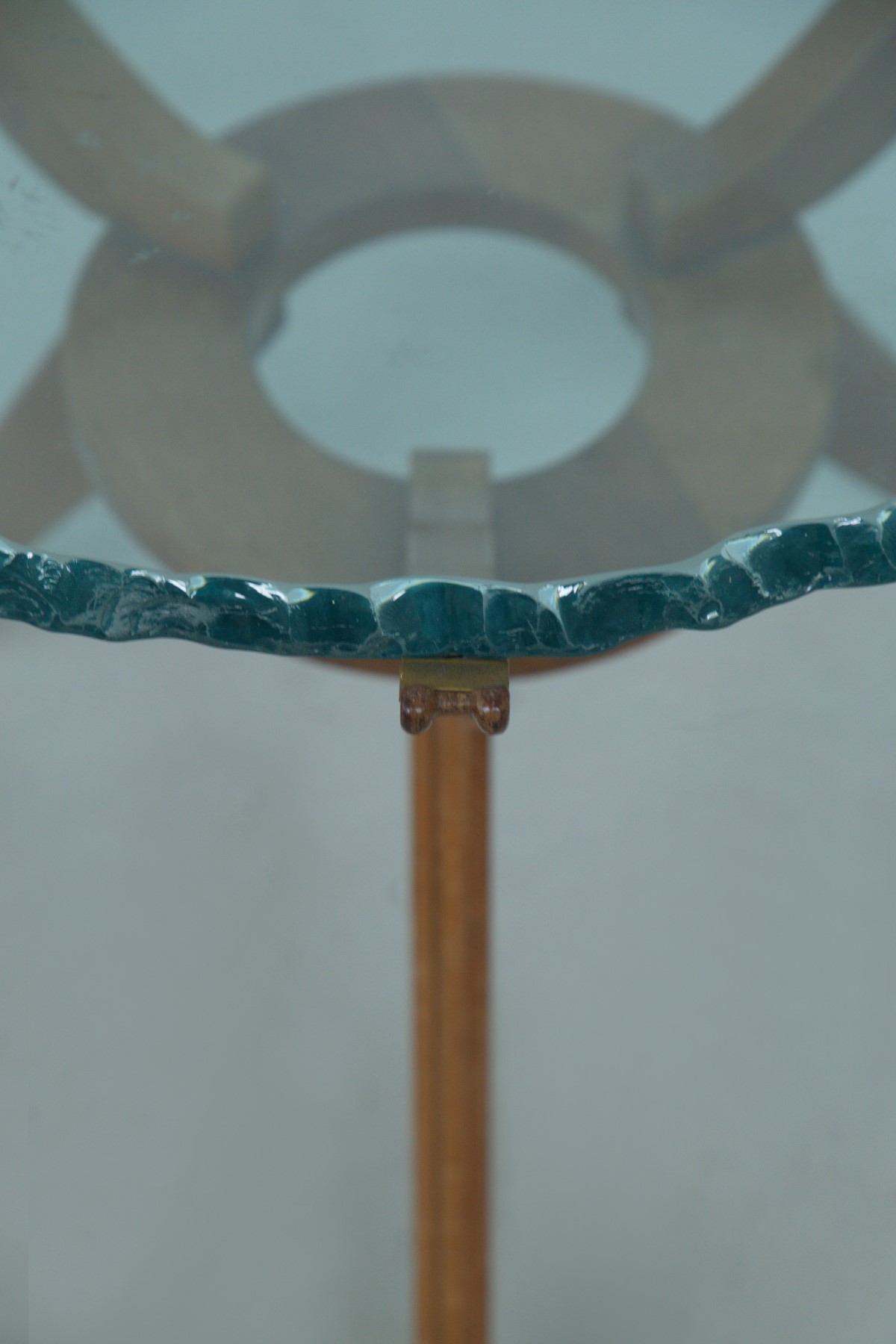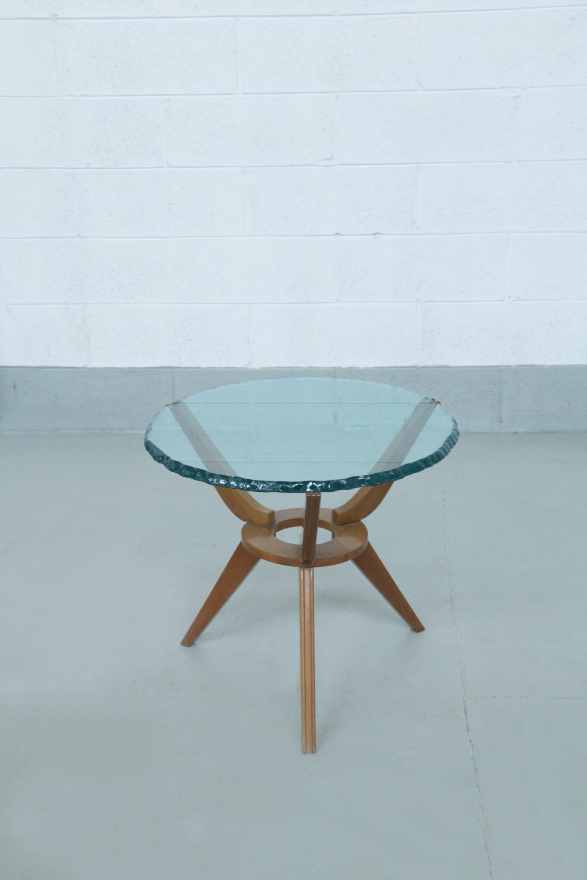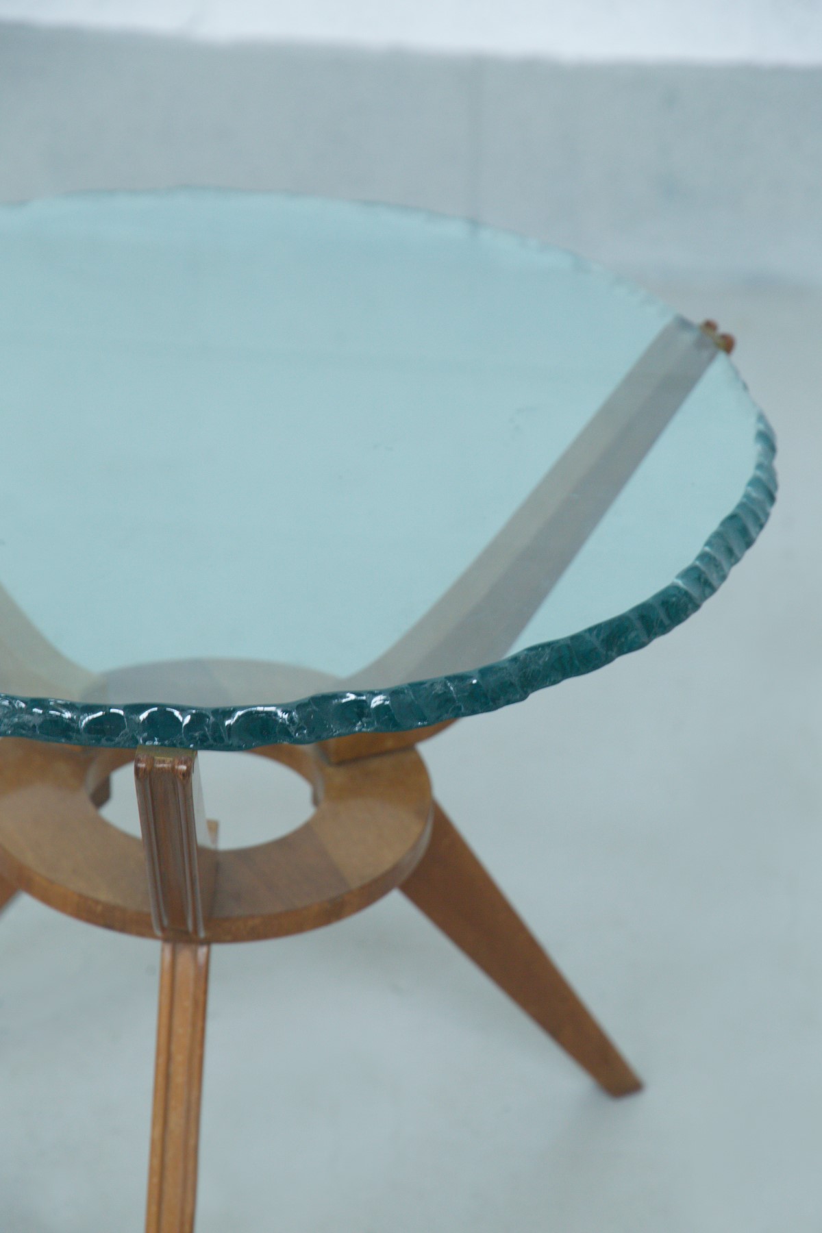 Tavolino da salotto di Fontana Arte anni 50, struttura in legno con giunture in ottone e vetro molato
