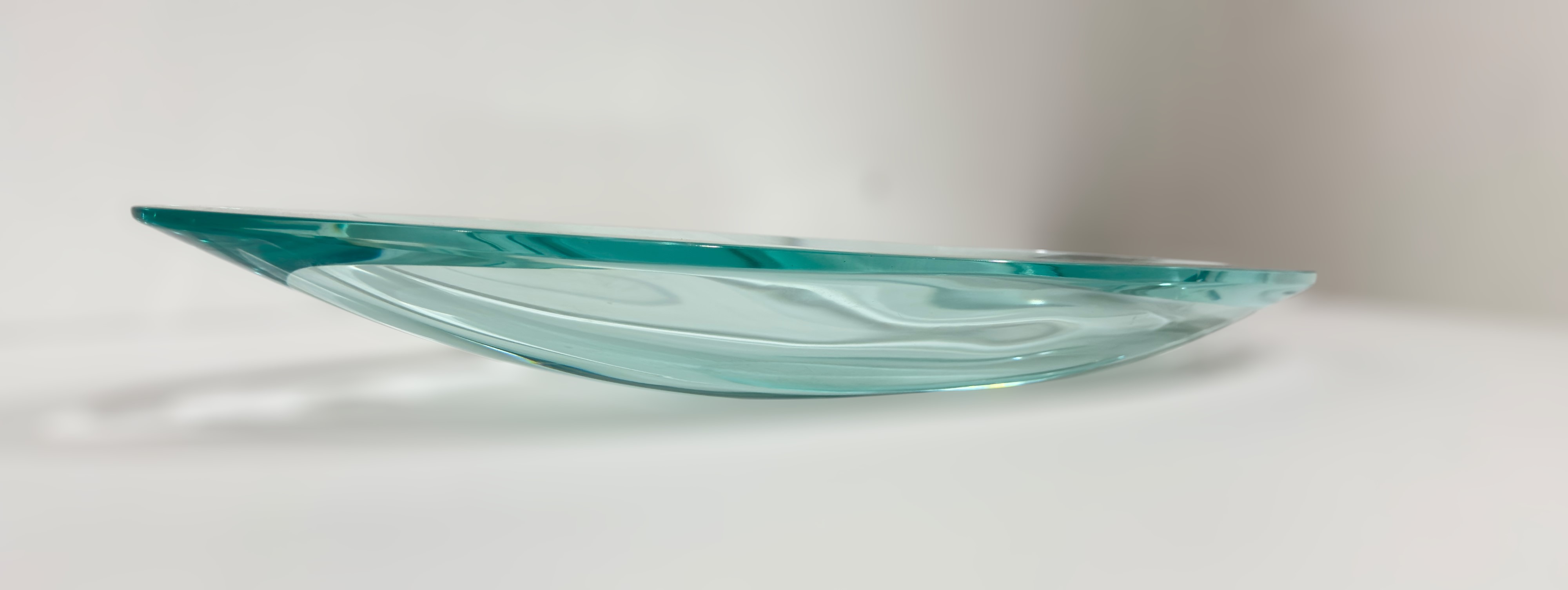 Centrotavola o Svuotatasche in vetro curvato e molato. Prod. Fontana Arte, Italia, 1950 ca
