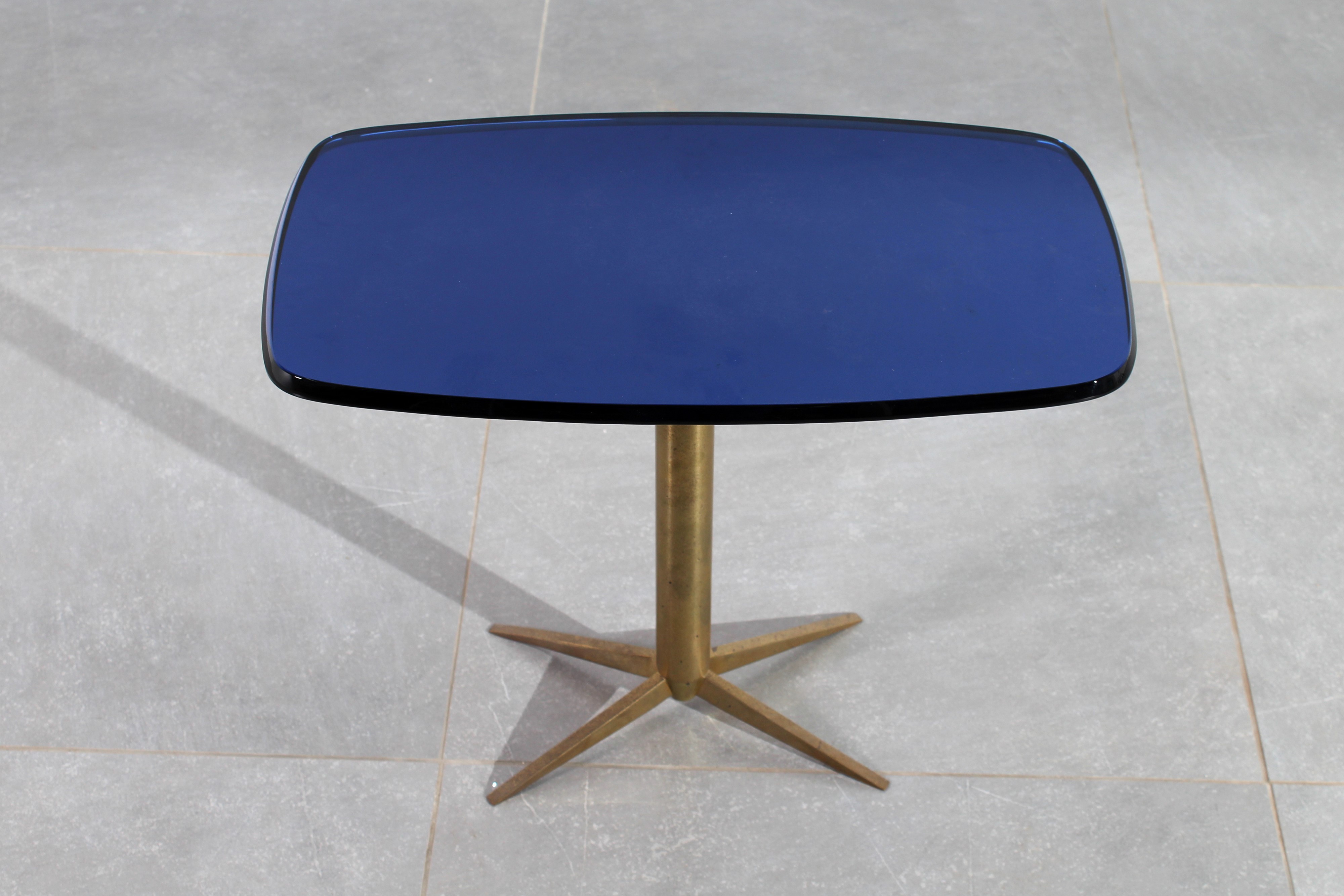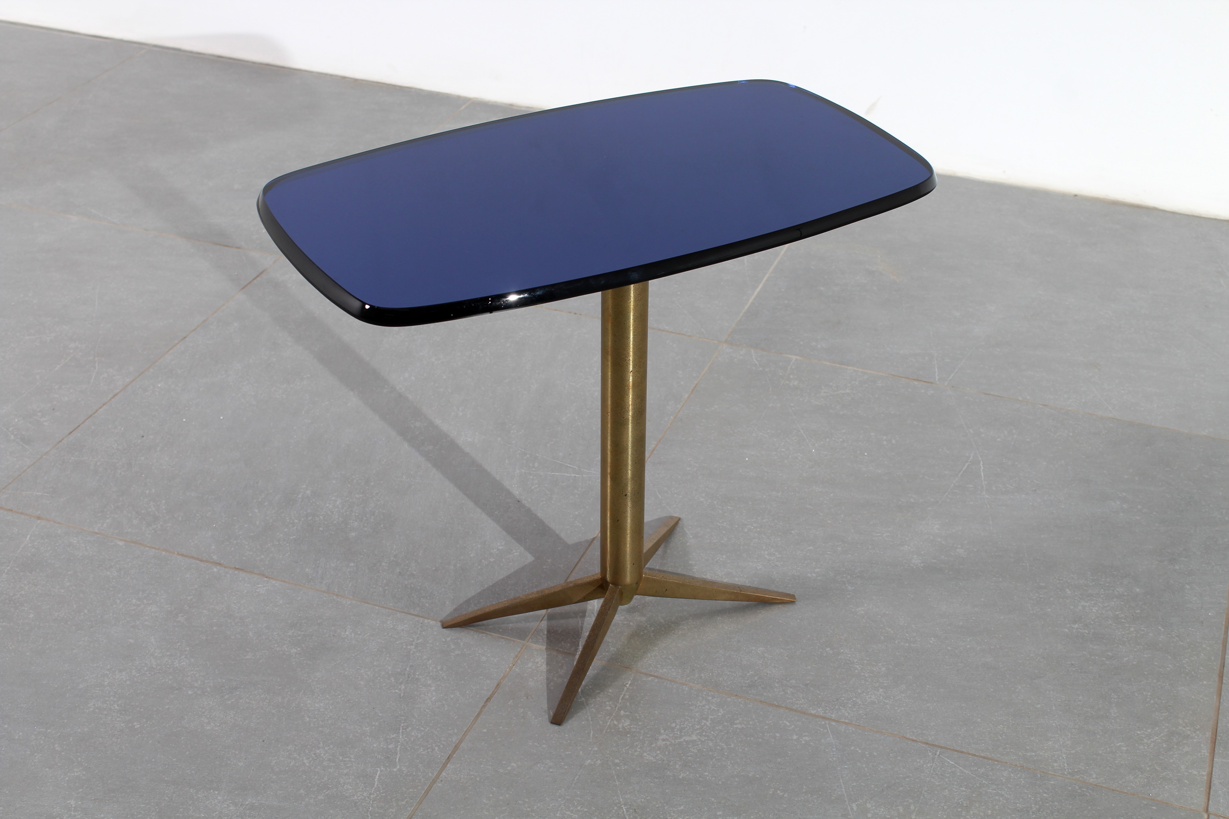 Tavolino mod. "2306" di Max Ingrand per Fontana Arte, Italia anni '60. Piano sagomato in vetro molato specchiato fissato magneticamente al piedistallo a quattro gambe in ottone. Bibliografia: "Quaderni Fontana Arte, n. 6", Luigi Fontana & C. s.p.a., 1964, p.144