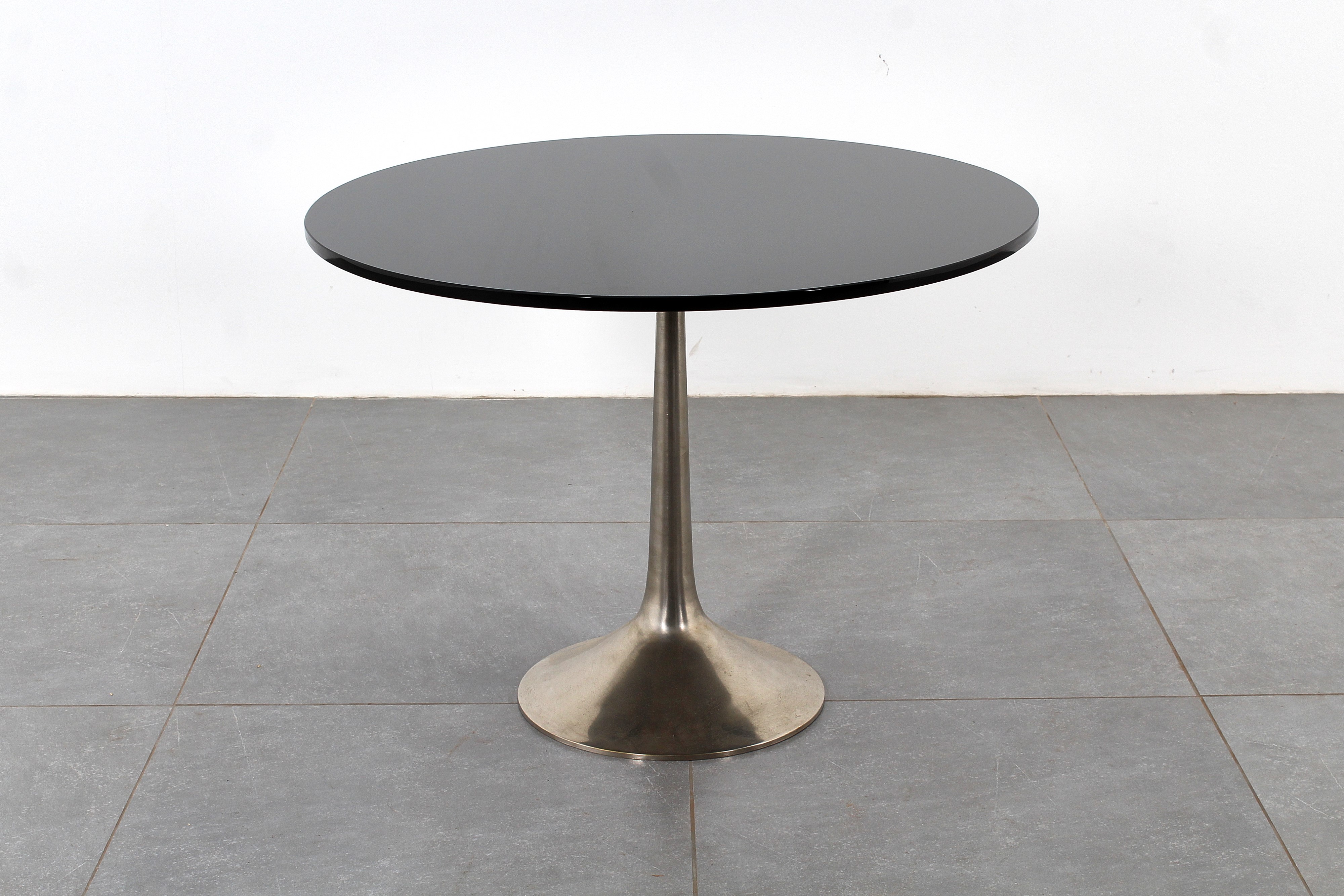 Tavolo basso mod. 2230 di Max Ingrand per Fontana Arte, anni '60, con piano in vetro specchiato, su base in ottone nichelato spazzolato.
