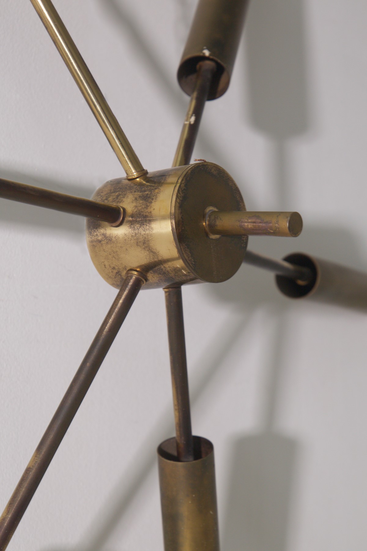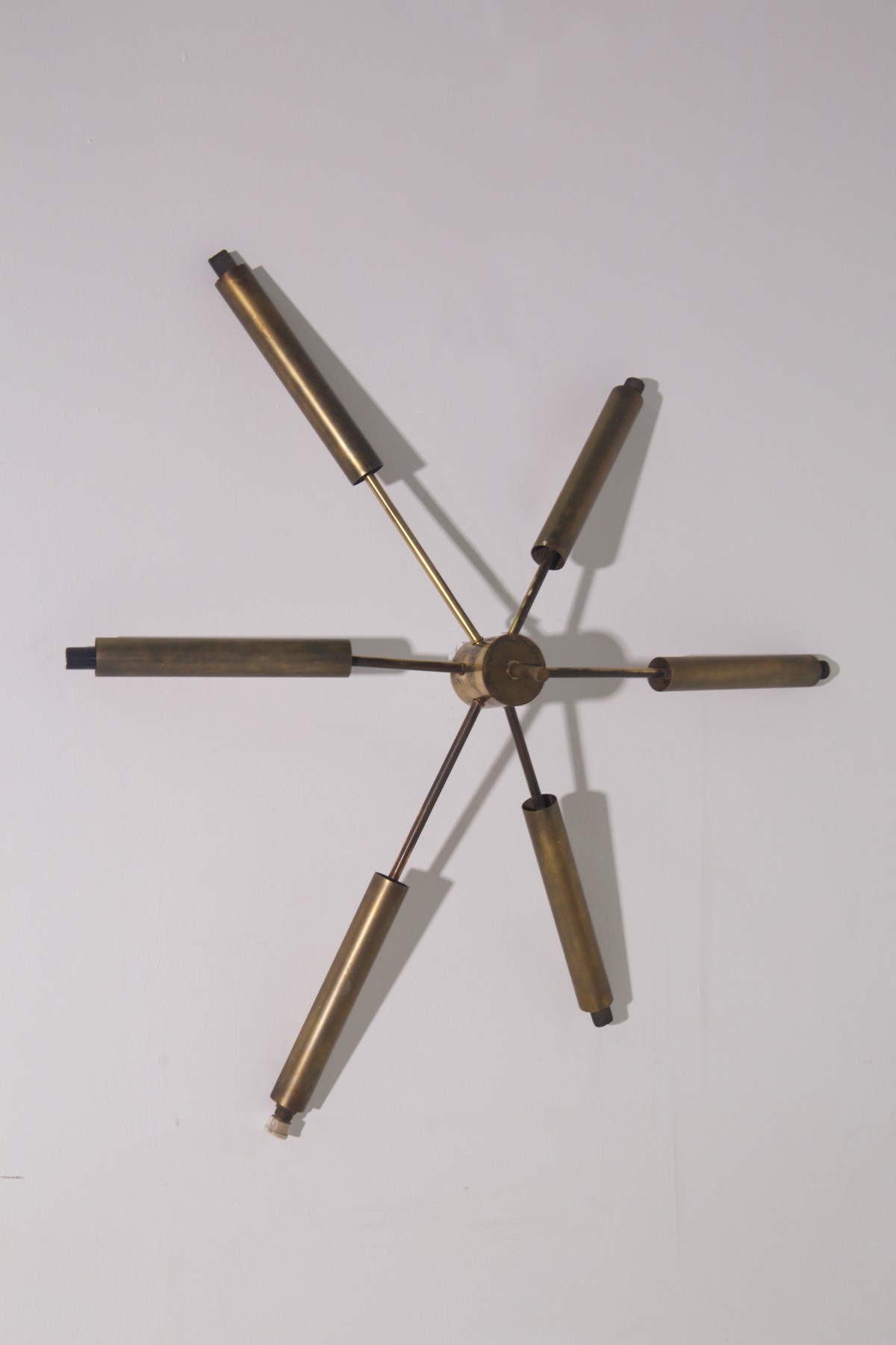 Plafoniera o lampadario da parete anni 50 di manifattura italiana in ottone a 6 luci