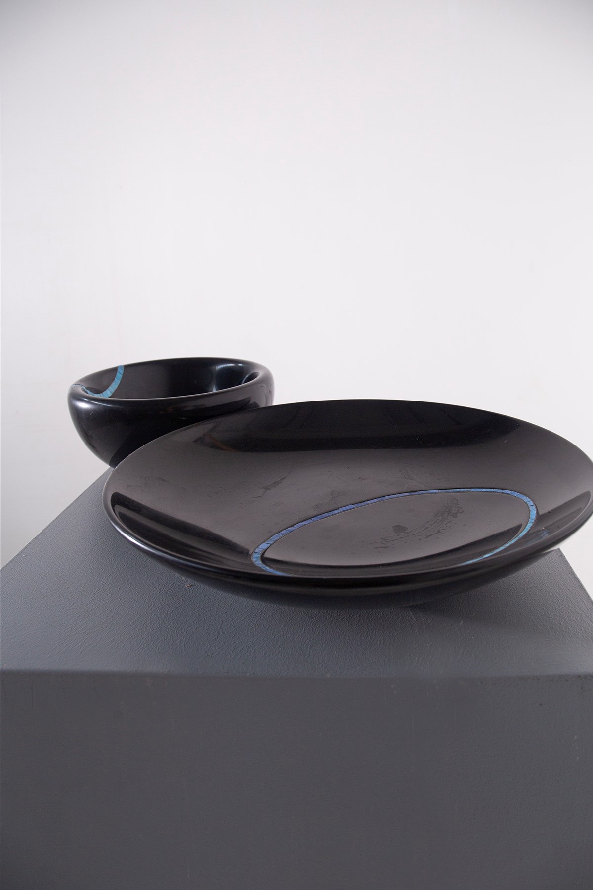 SET IN MARMO NERO DEL BELGIO TURCHESE . Dimensioni cilindro: h 30 cm, diametro 9.5 cm, Ciotola piccola: H34 cm diametro 26 cm