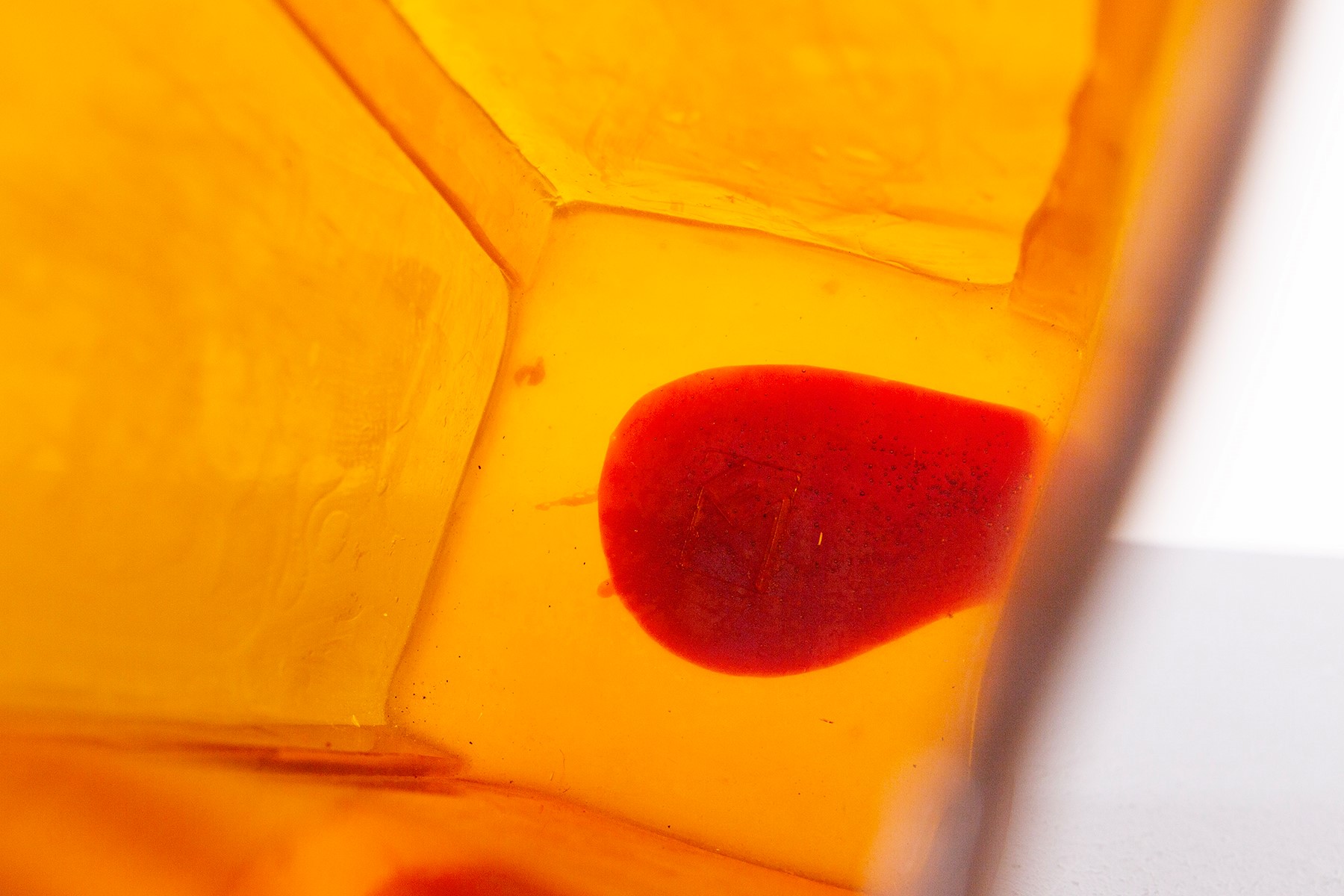 Vaso in resina di Enzo Mari firmato alla base, 1970. Colore arancio