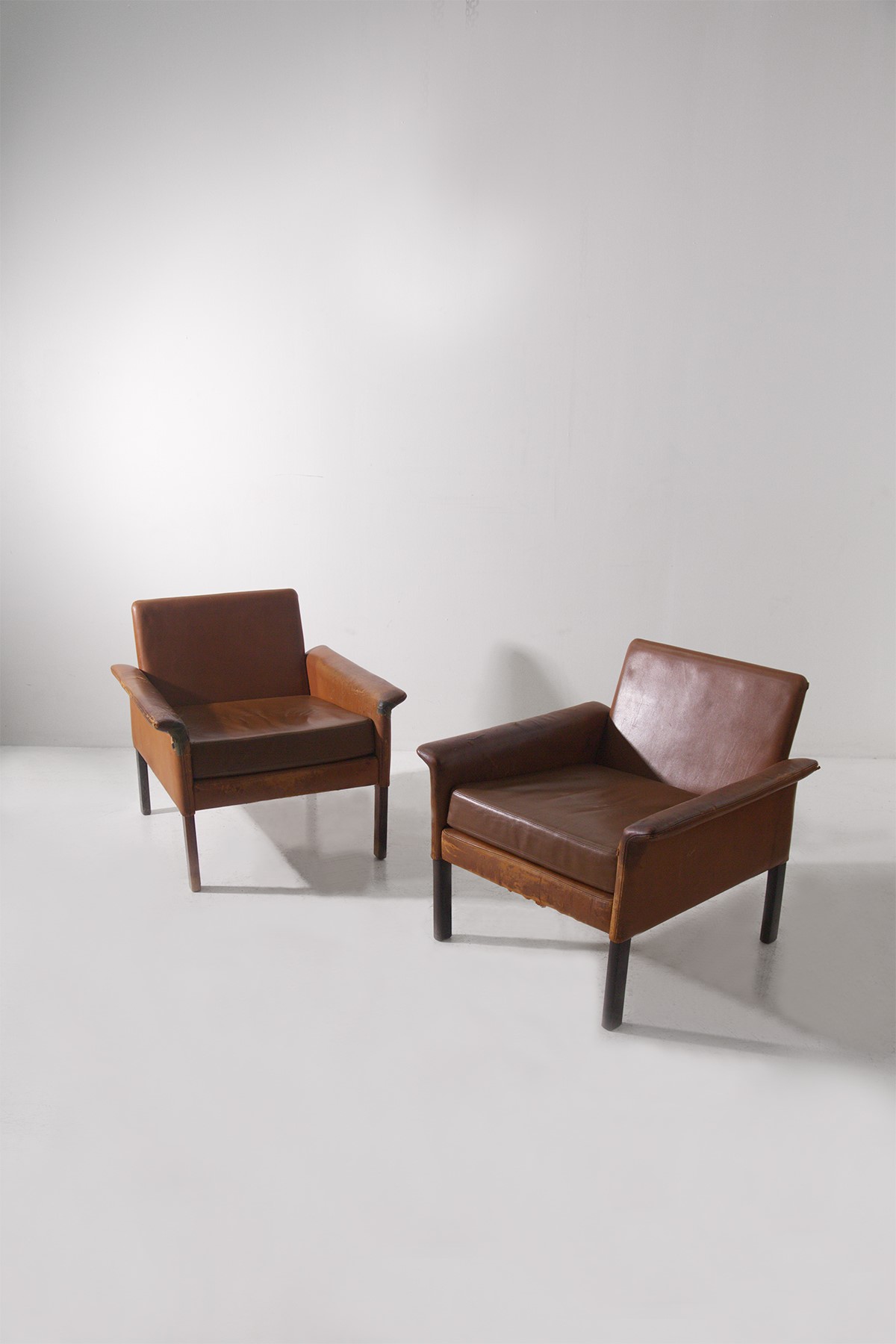 Coppia di poltrone Hans Olsan per Borge Mogensen , anni 60 in pelle originale dell'epoca