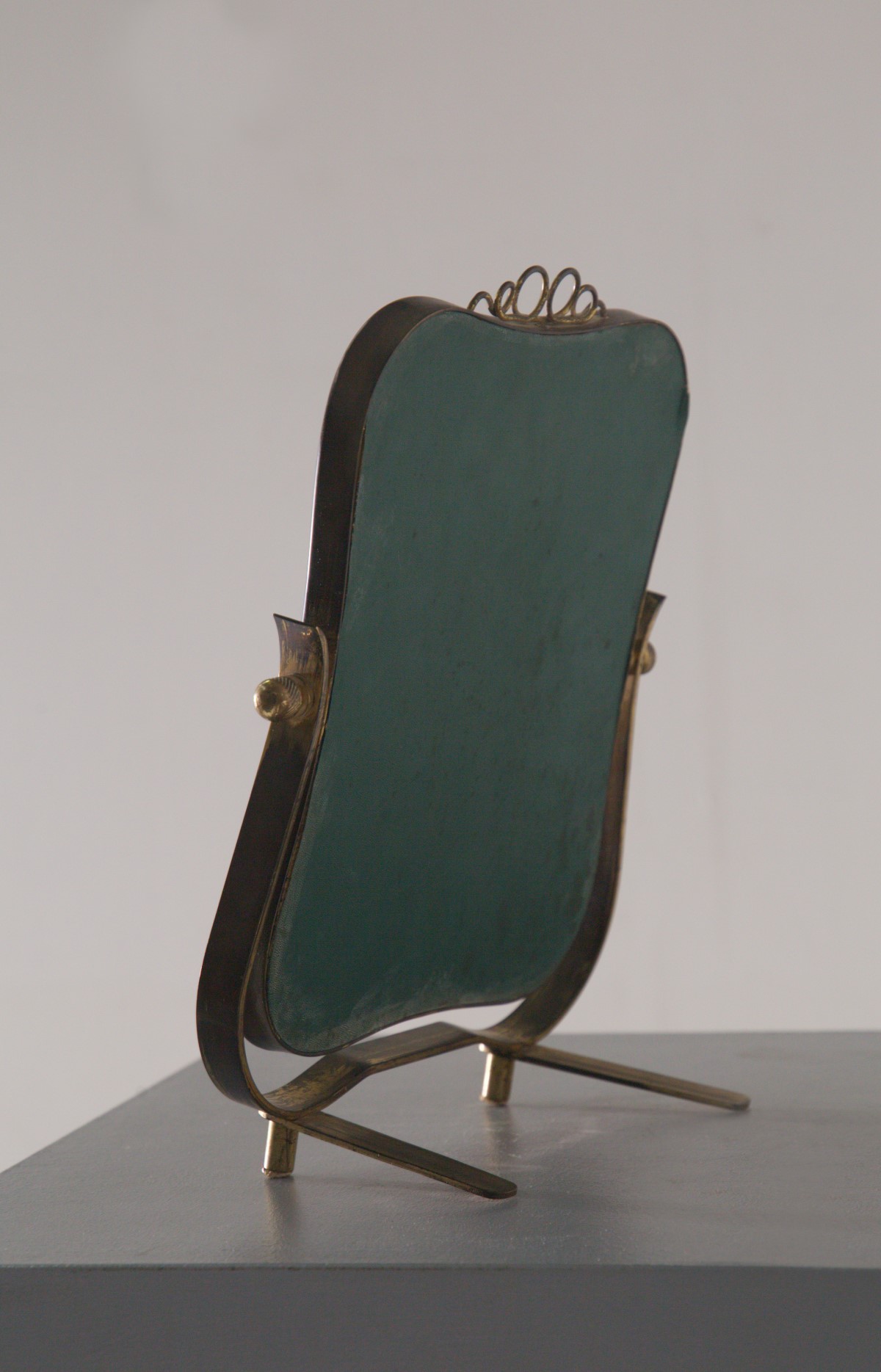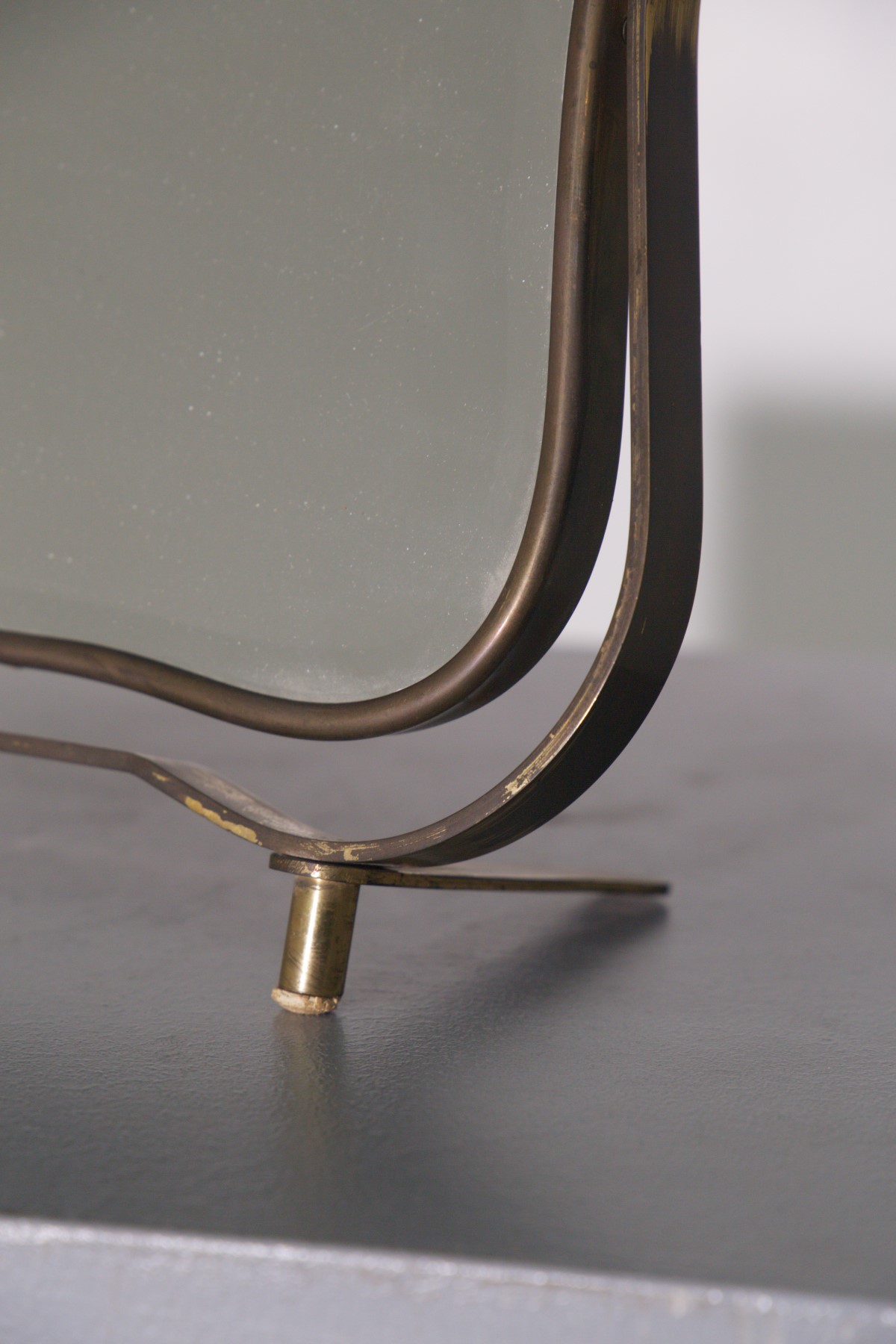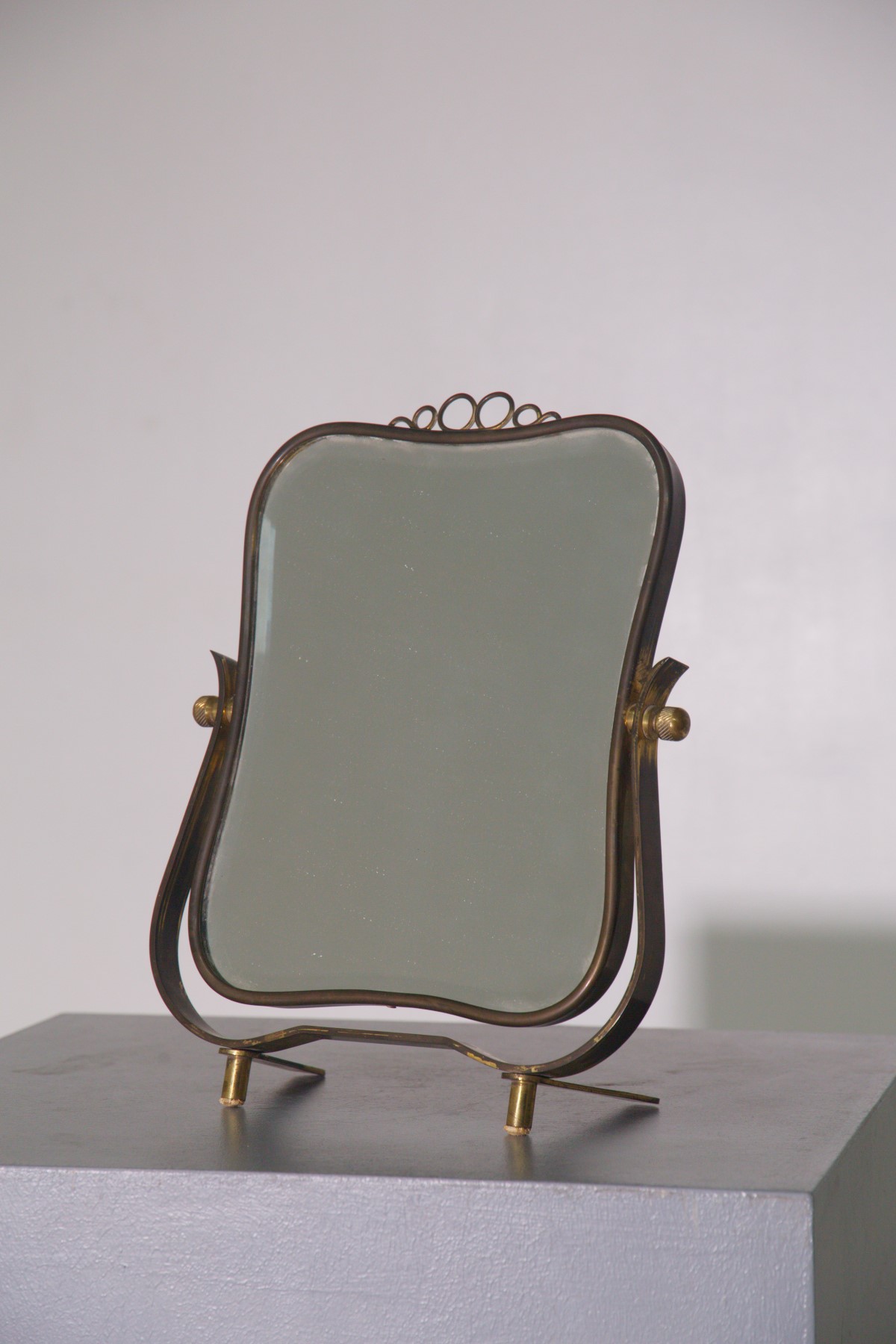 Specchio da tavolo o da Vanity attribuito a Gio Ponti per Fontana Arte anni 40. In ottone pieno e specchio.