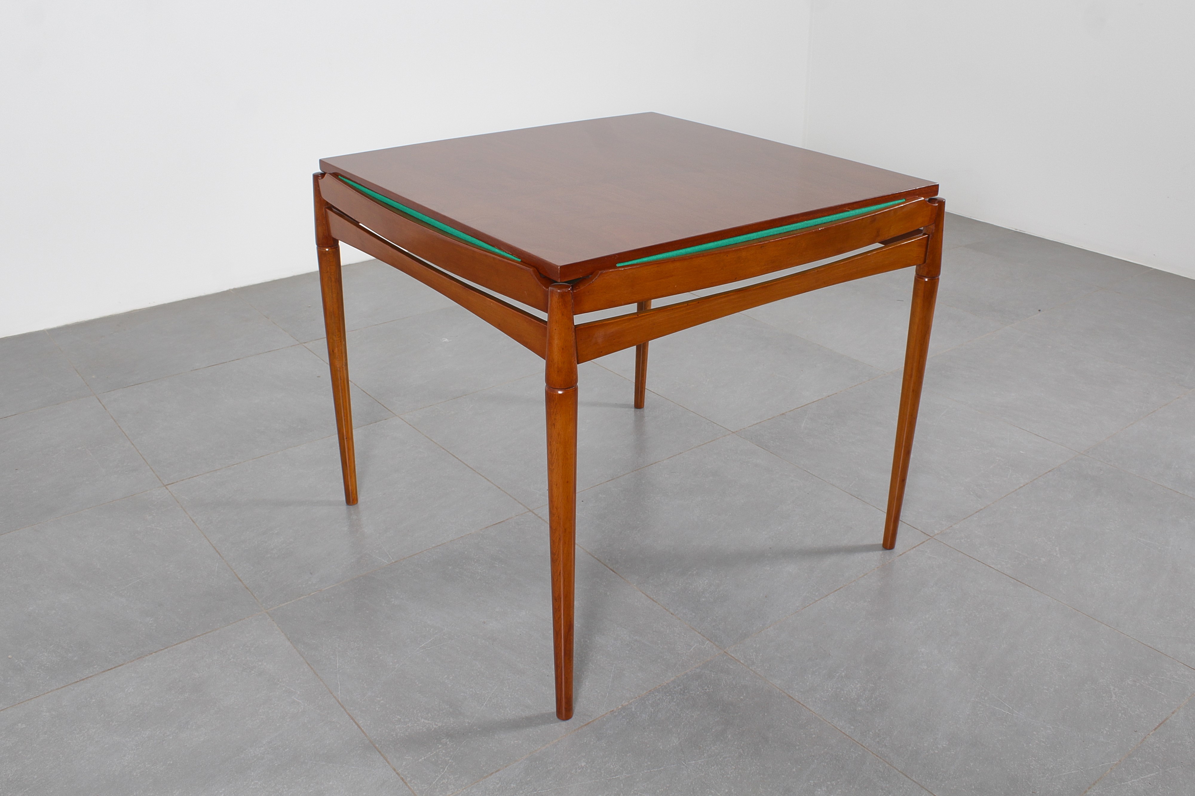 Tavolo da gioco modello "Club"di Giò Ponti. Legno esotico, tessuto. Produzione Fratelli Reguitti, anni '50.