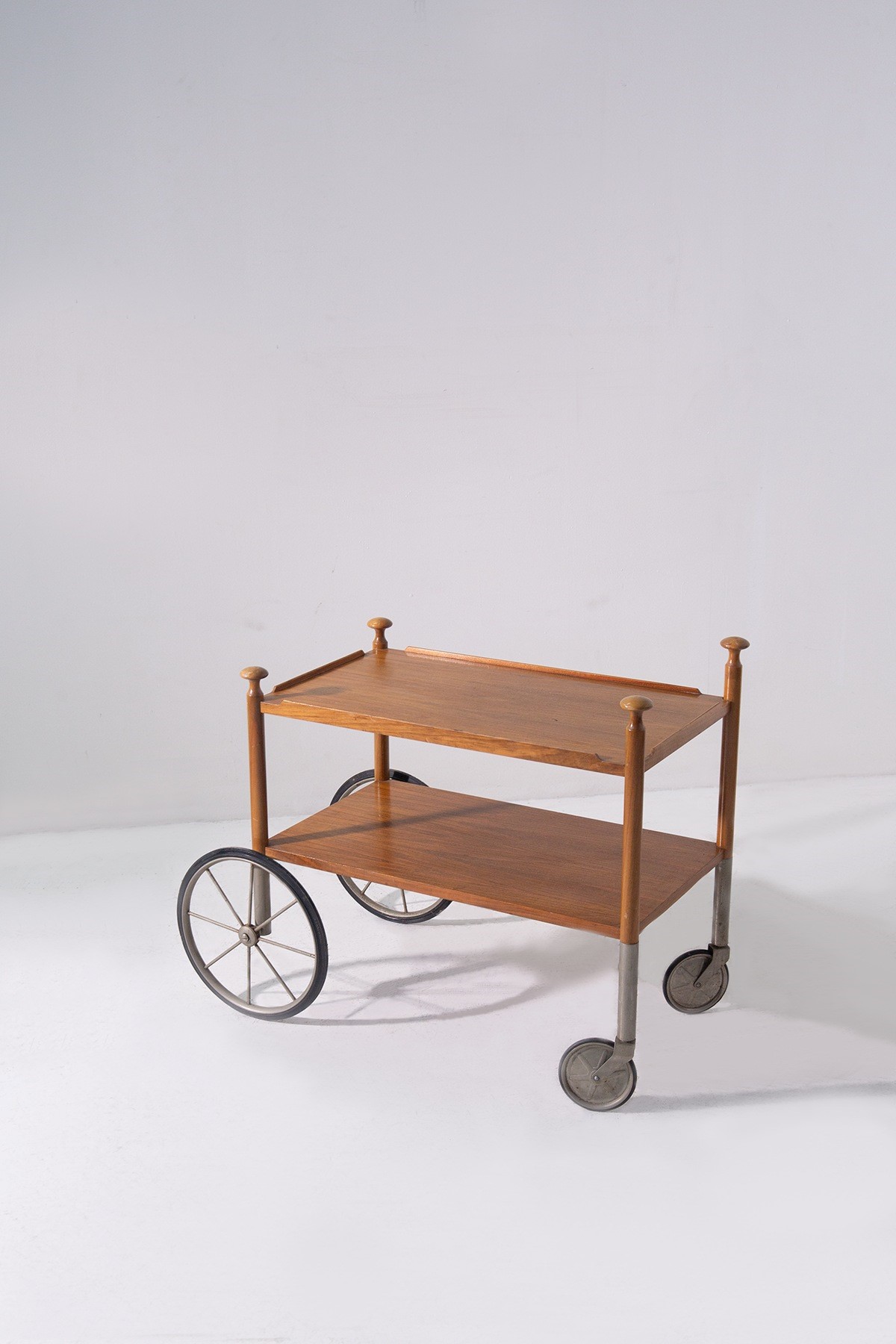 Raro carrello da bar del anni 50 in noce massiccio. Prodotto dal noto produttore di mobili tedesco Wilhelm Renz.