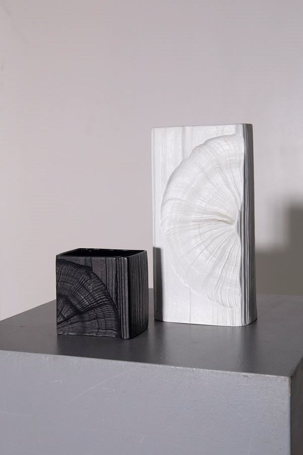 Coppia di vasi in porcellana Op Art o Brutalist della linea Rosenthal Studio, disegnati da Martin Freyer tra la fine degli anni '60 e l'inizio degli anni '70.