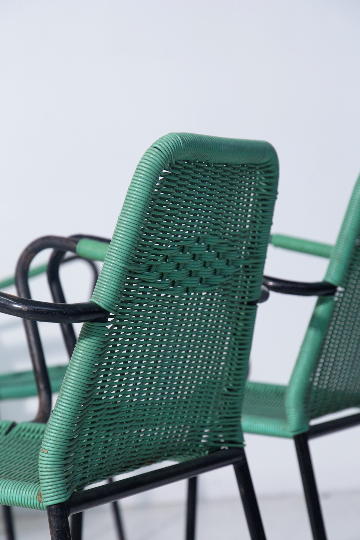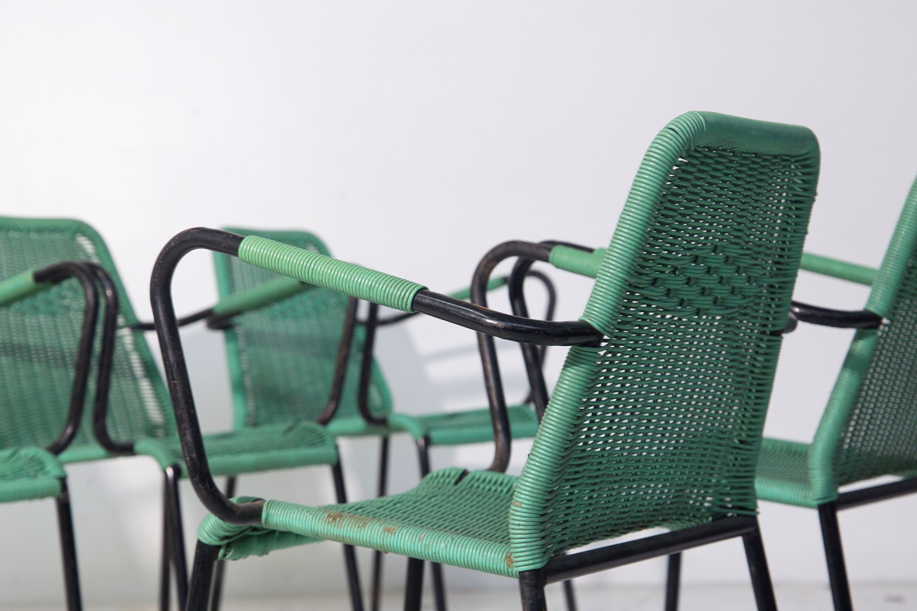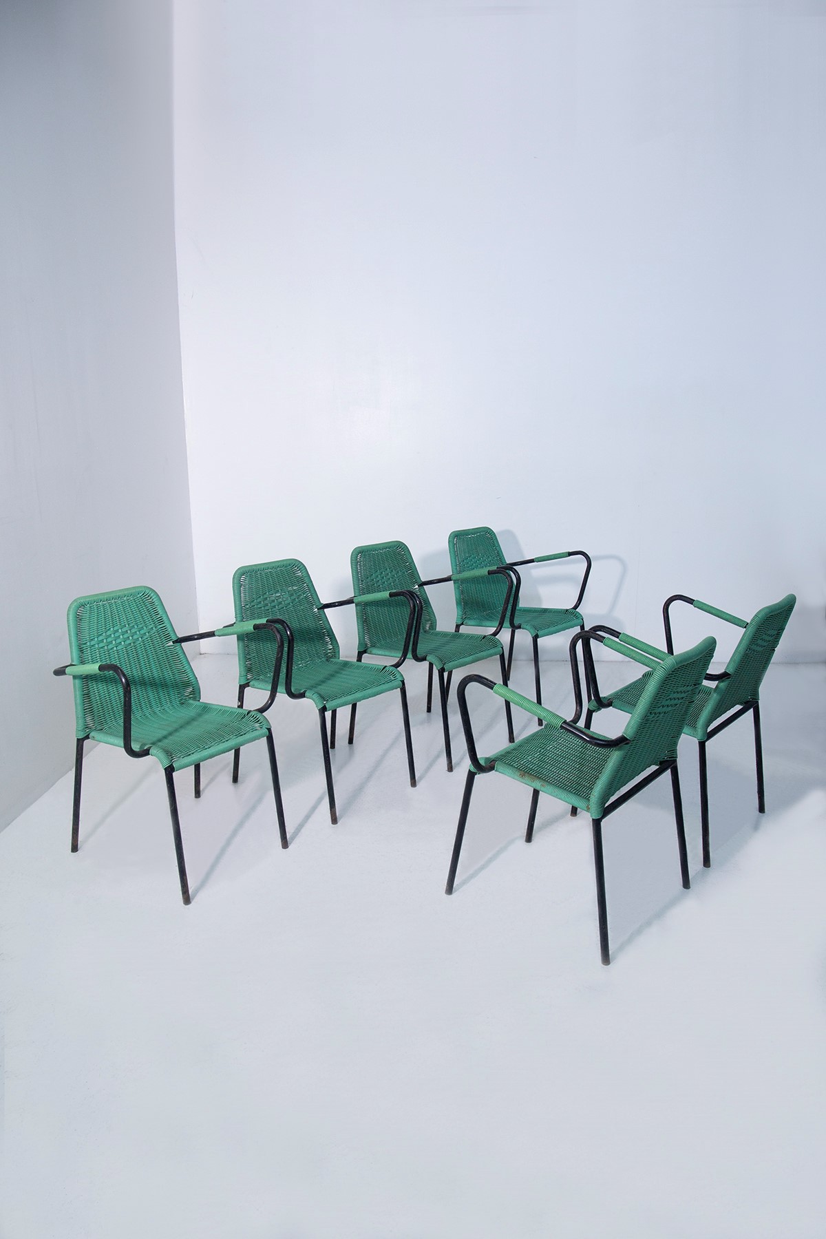 Set di sei sedie italiane anni 60 modello Scooby Doo in metallo e plastica verde