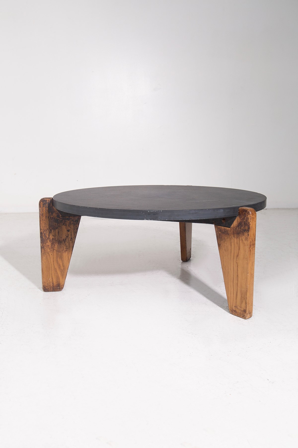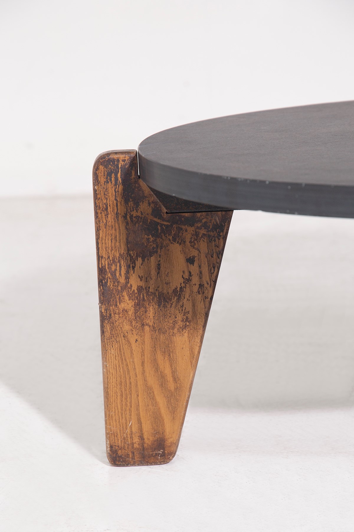 Piccolo Tavolino di Jean Prouvè con ripiano in ardesia, Piedini in legno e metallo.