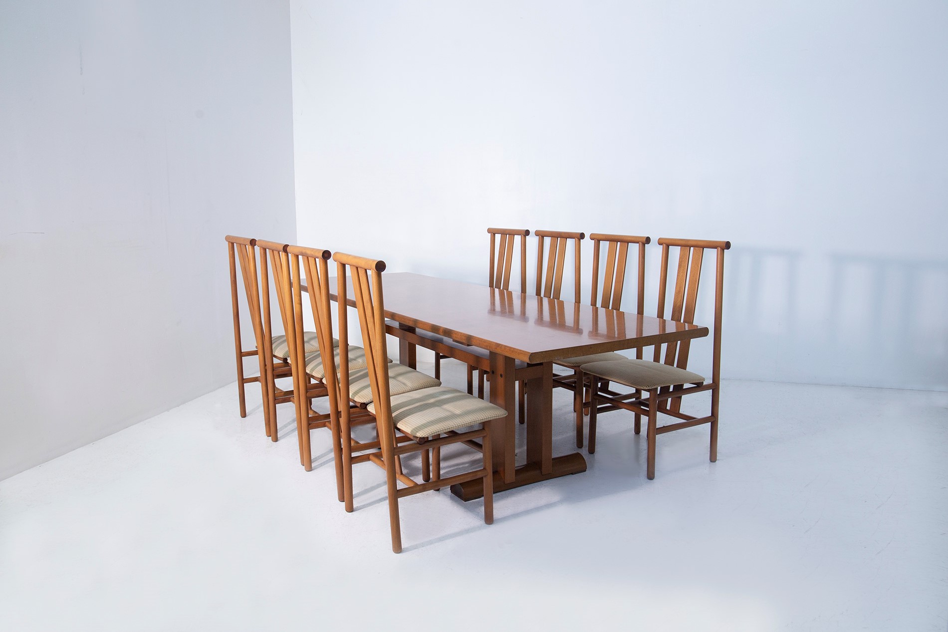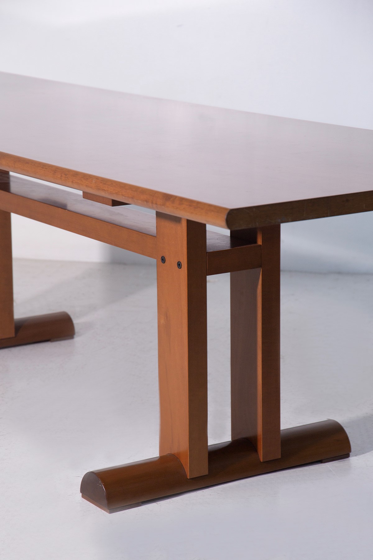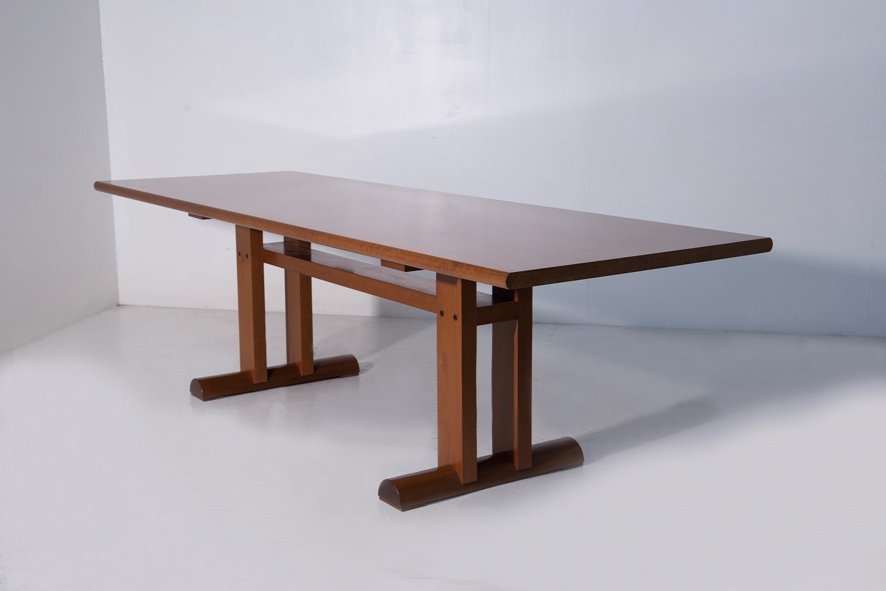 Grande tavolo da pranzo di Annig Sarian per T70 anni 80. Struttura in legno di frassino massiccio