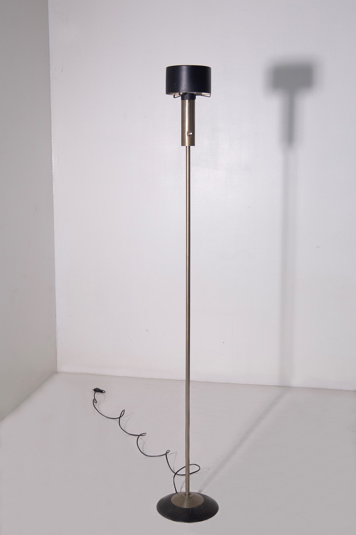 Una lampada da terra modello '4078' anni '60. Ghisa verniciata ottone nichelato opaco.