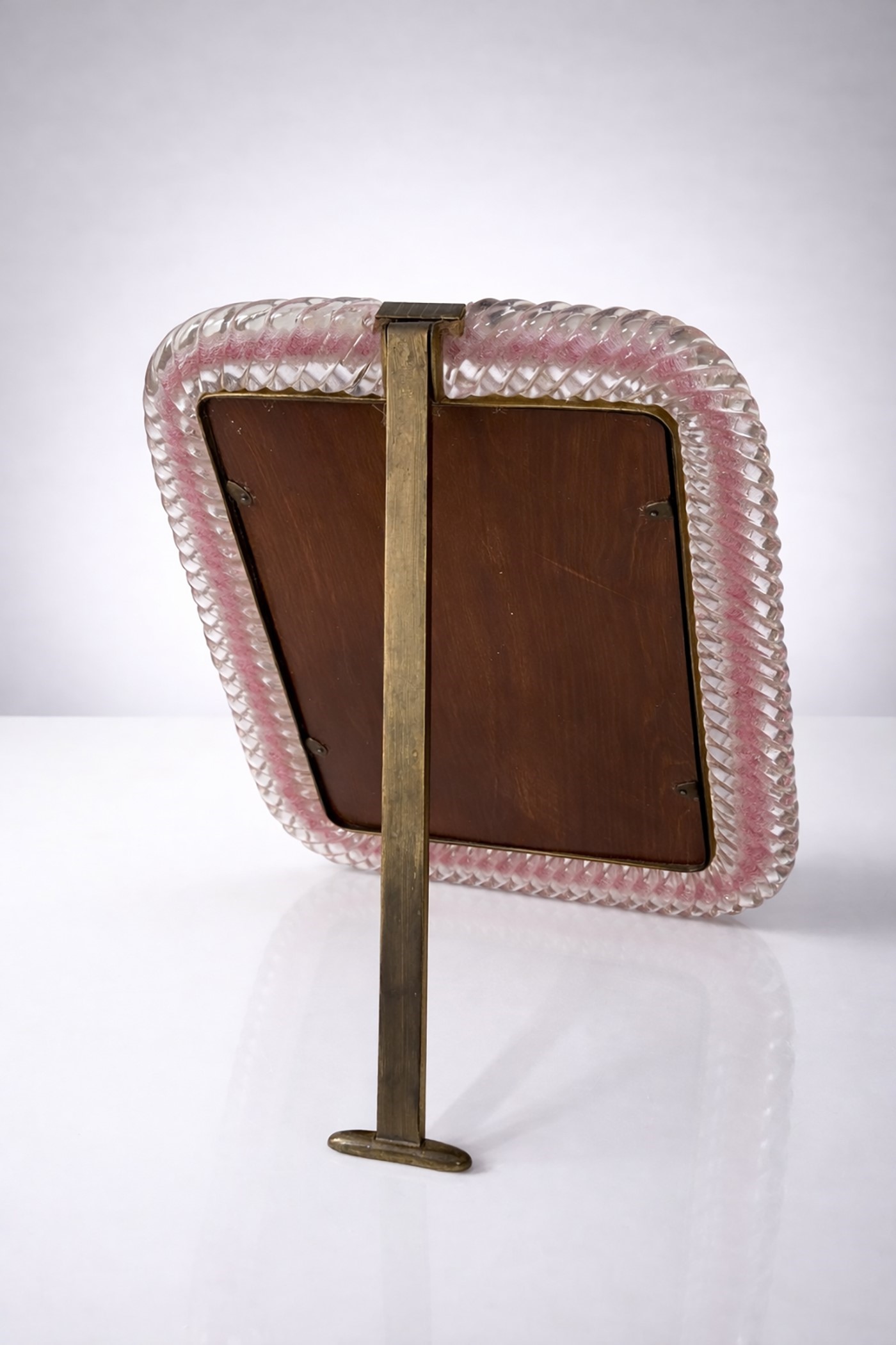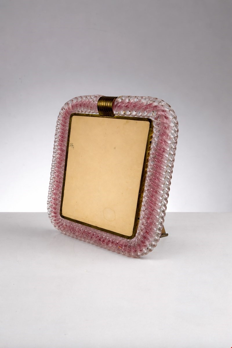Cornice Portafoto anni 50’ BAROVIER TOSO marchiata su ottone. In vetro di Murano Rosa (colorazione molto rara) con lavorazione torchon. Anni 40. Marchiato