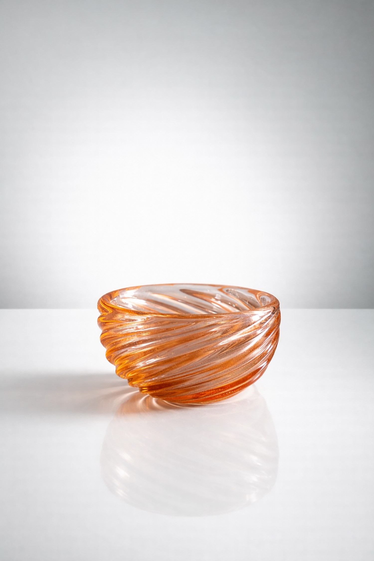 Coppa di vetro di Paolo Scarpa anni 30 "Diamante" a sezione polilobata colore rosato, produzione Venini. Firma all'acido Venini