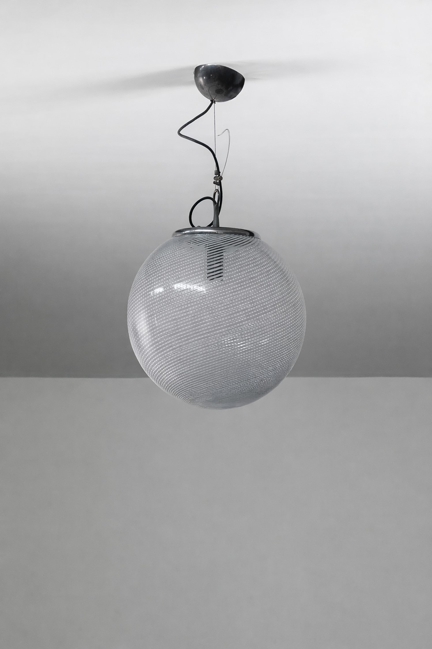 Lampada a sospensione, realizzata negli anni '70 da Venini, incarna l'eccellenza dell'arte vetraria di Murano.