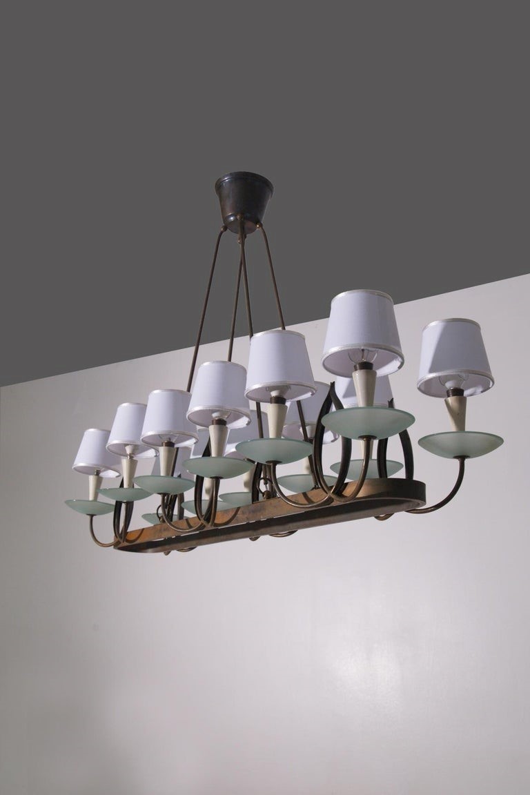 Lampadario italiano di Pietro Chiesa in ottone e vetro 1950.