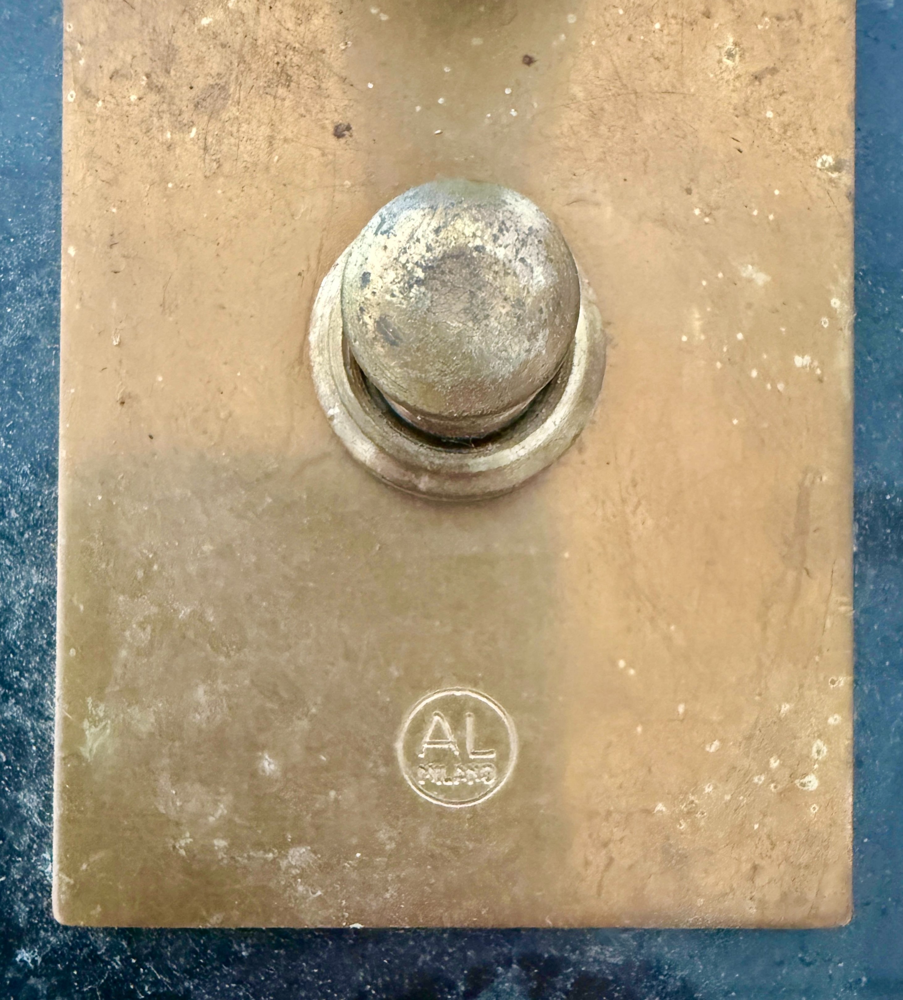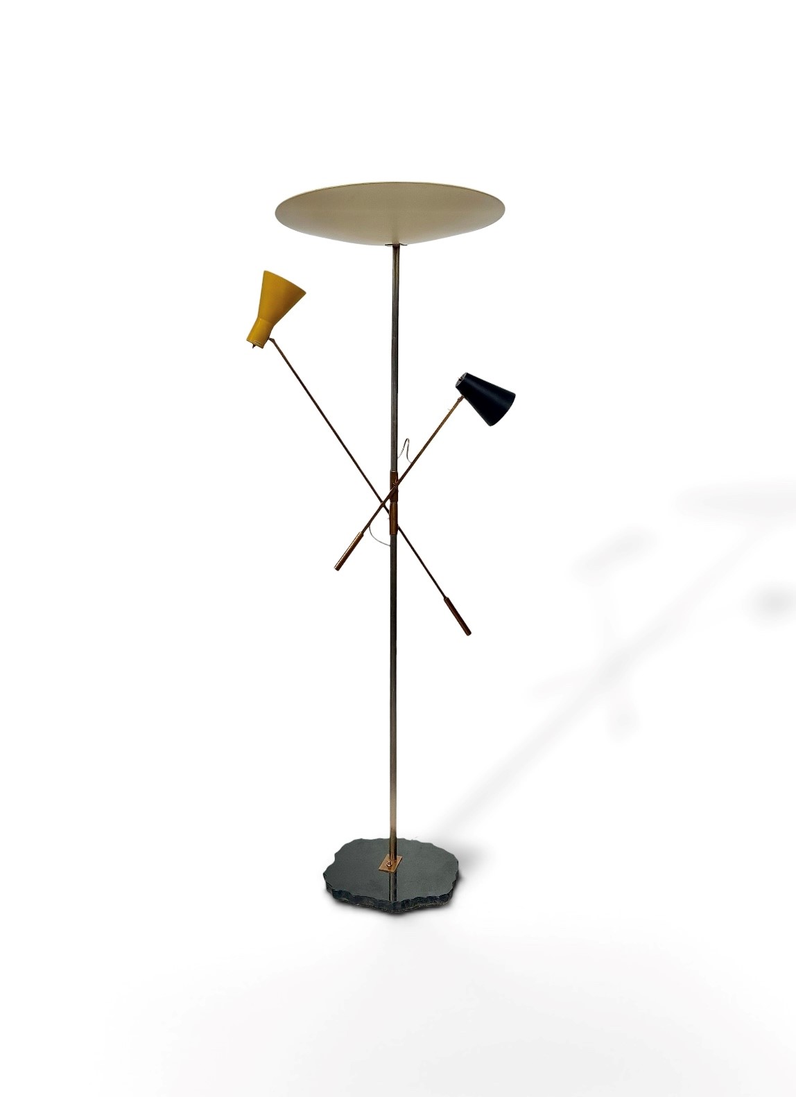 Lampada da terra. Marmo, ottone, alluminio verniciato. Italia XX secolo.