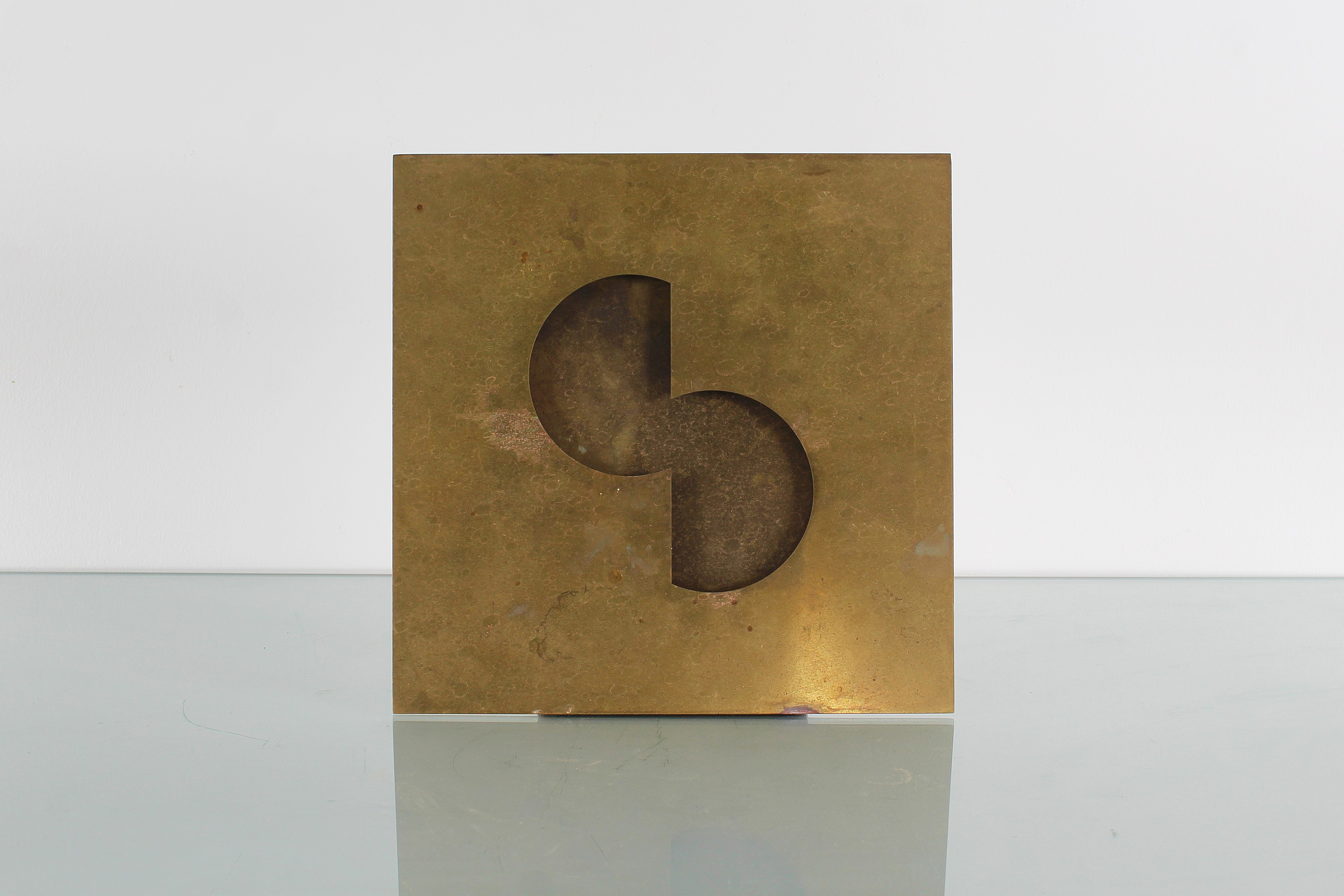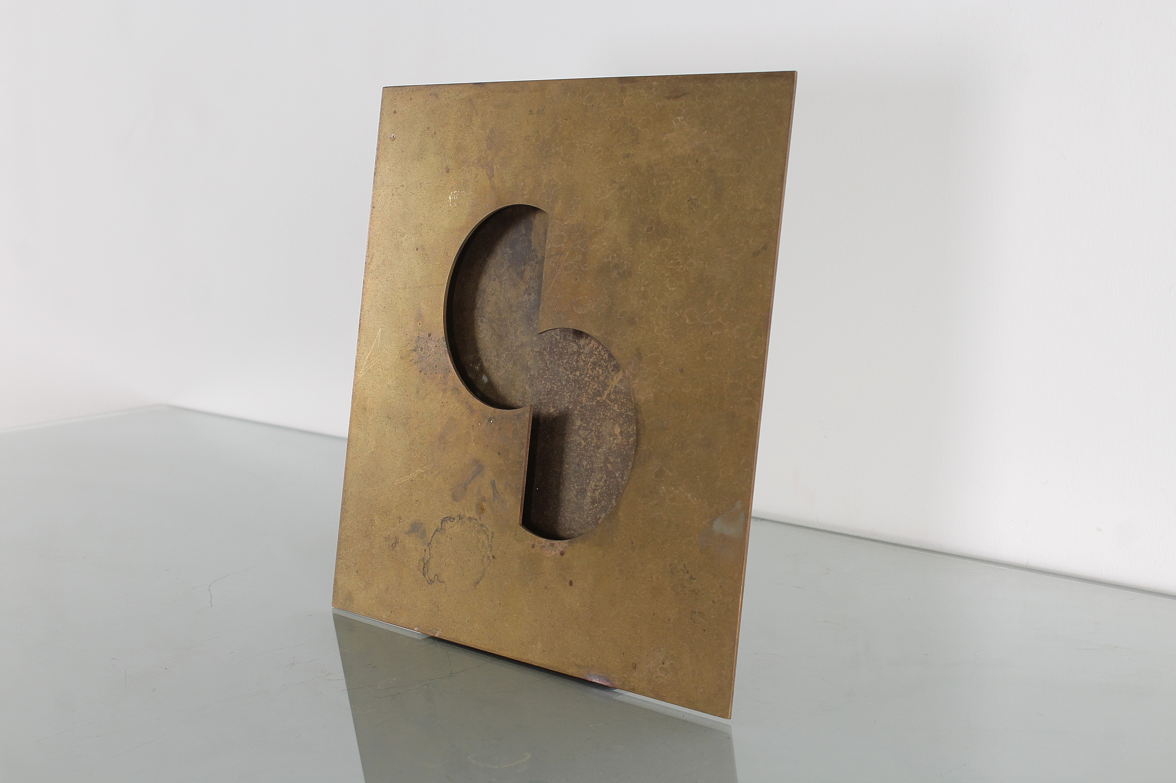 Square brass photo frame with two photo slots, designed by Gabriella Crespi. Made in Italy, ca. 1970