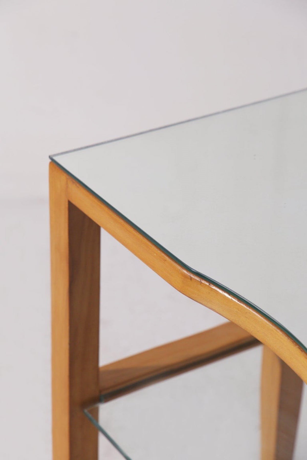 Piccola console anni 50 attribuita a Gio Ponti con ripiani in vetro e vetro specchiato.